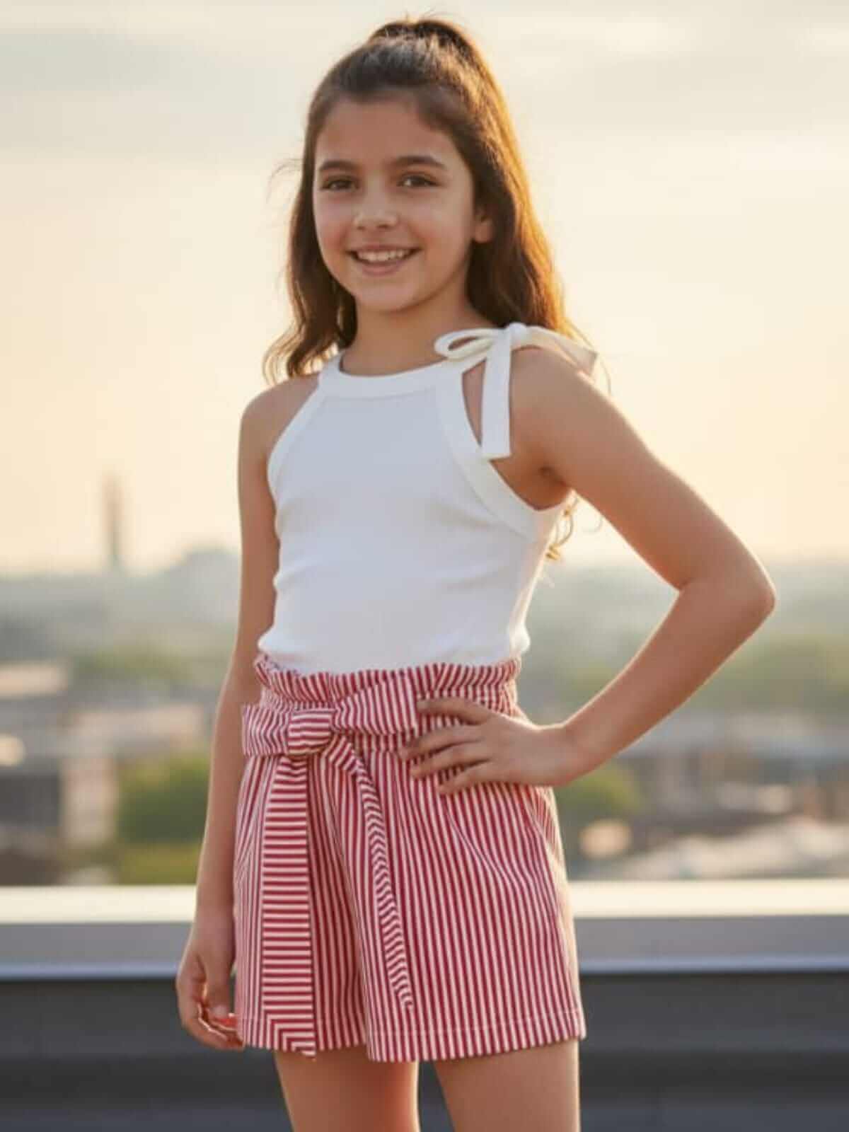 O detalhe especial fica por conta da amarração lateral, trazendo charme e delicadeza ao look das pequenas.