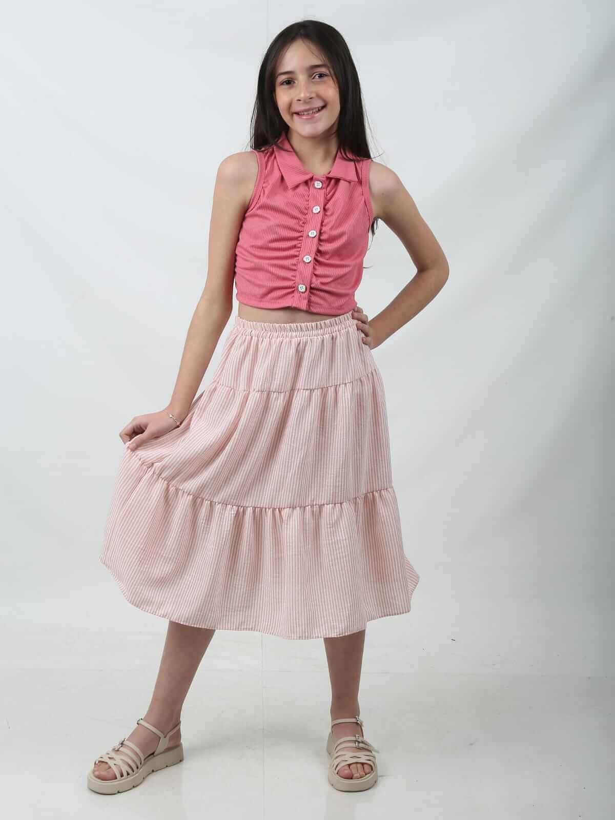 Apresentamos a charmosa Saia 3 Marias, confeccionada em tecido viscolinho de alta qualidade.
