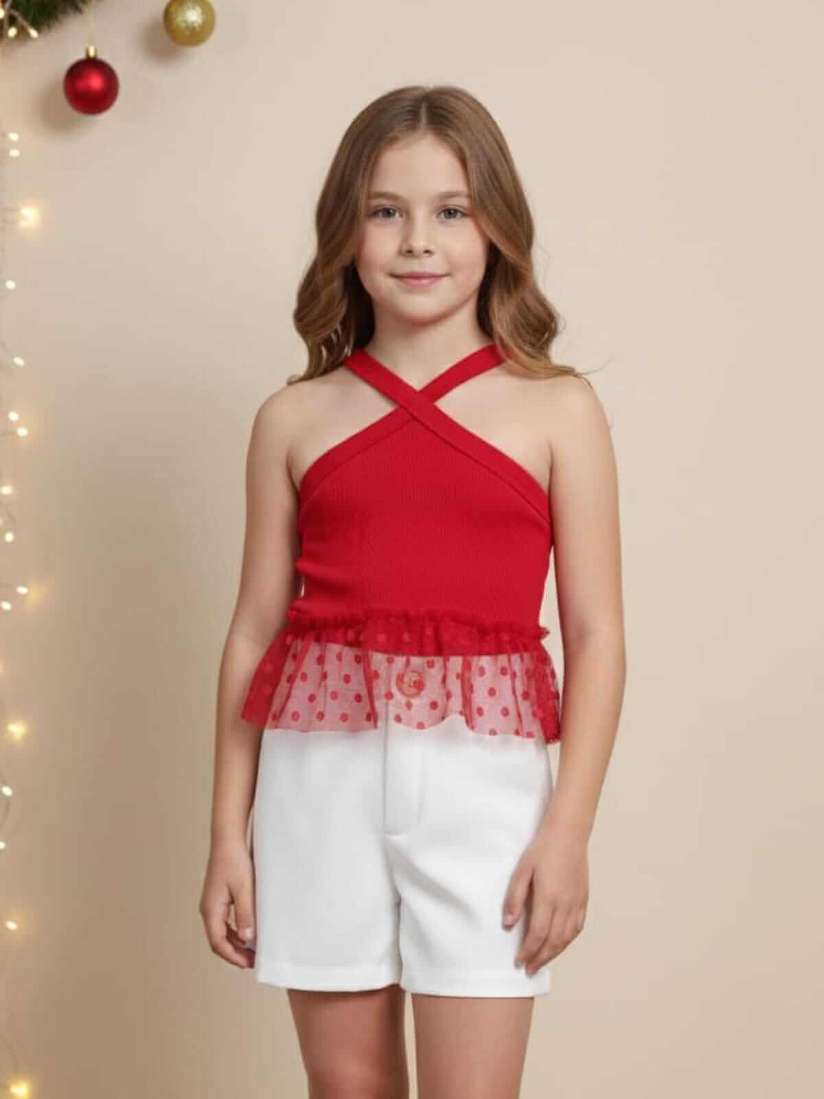 nossa Blusa Rubi une a delicadeza da ribana com a leveza do tule, criando um look mágico,