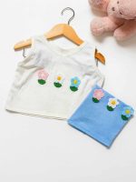 As aplicações em flor de crochê 3D trazem um charme artesanal encantador, valorizando o visual infantil com um toque de fofura e estilo. ?