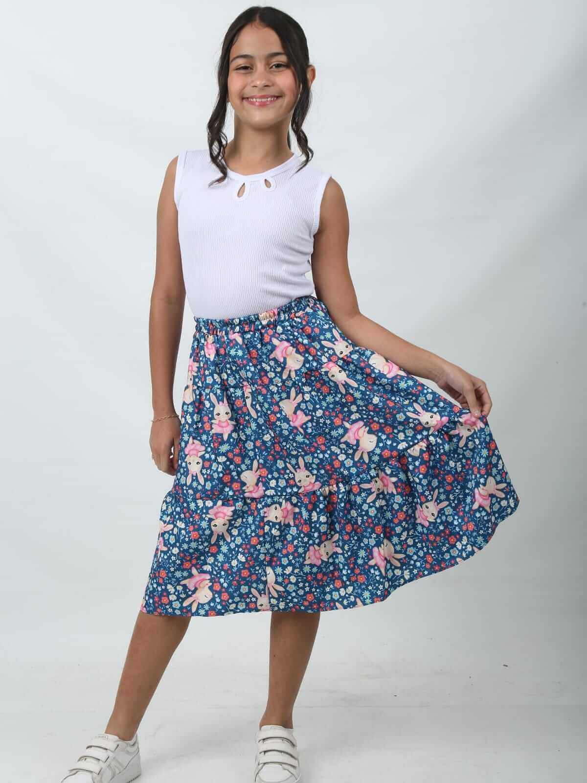 Apresentamos a charmosa Saia 3 Marias, confeccionada em tecido viscolinho de alta qualidade.