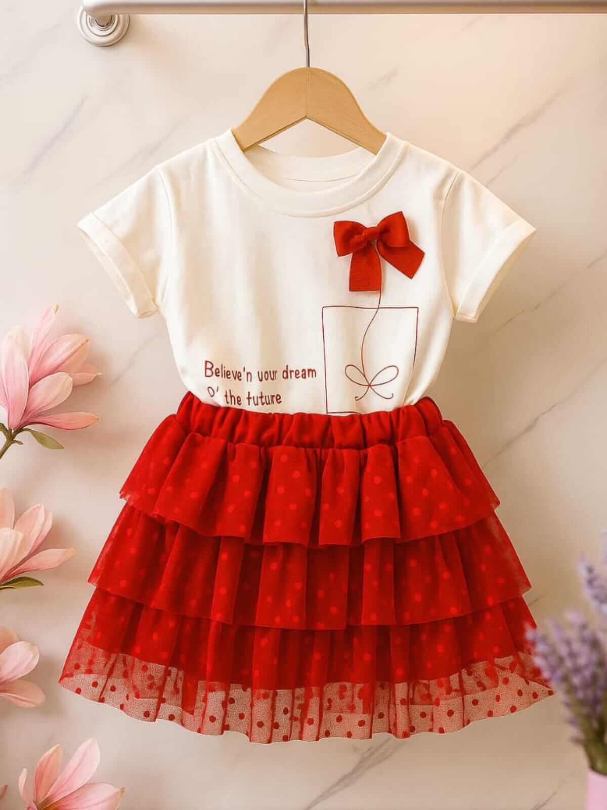COM COM ESTAMPA ESCRITA EM INGLES E DETALHE DE LAÇO COSTURADO